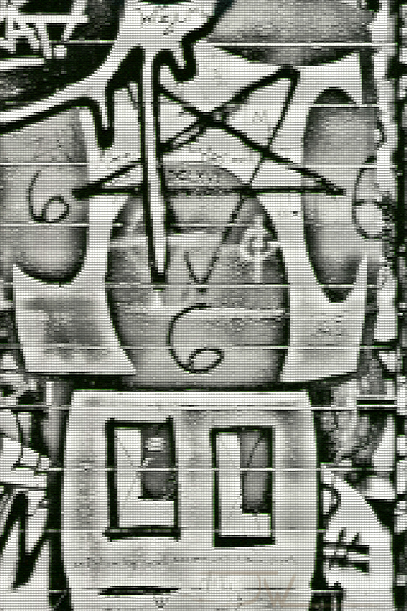 This is a photo of some graffiti that was scanned from a digital image on a first generation ipads screen.
