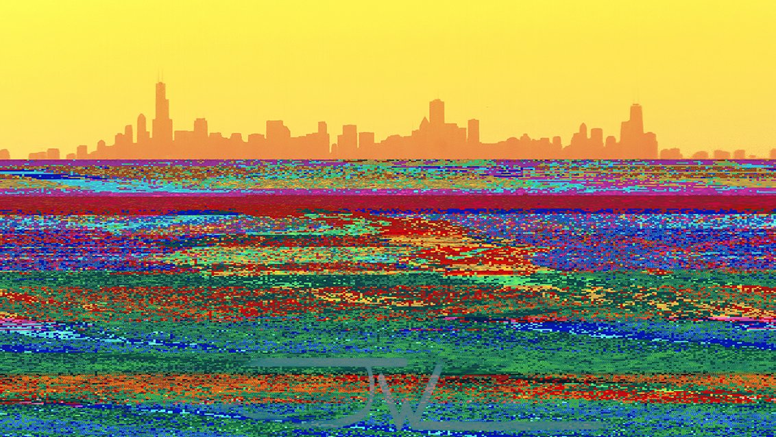 Shot on a beach in Gary, Indiana. This image was glitched using notepad++.